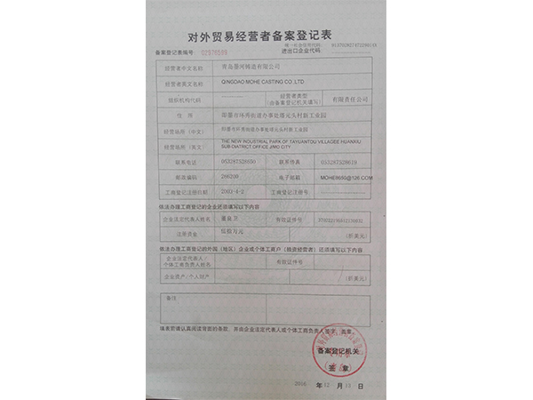 青島墨河鑄造有限公司 聯(lián)系人:董照 電話:13953213469(微信同號) 座機:0532-87566543 郵箱:mohe@moher.cn QQ:1678294021 地址:青島即墨市泰山一路南端186號